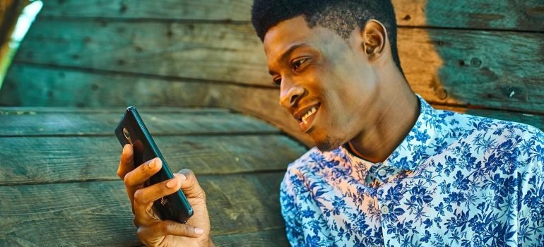 A man holding a phone, contacting dual diagnosis treatment centers Pennsylvania.