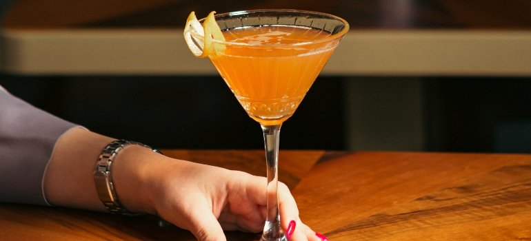 a glass of alcoholic beverage