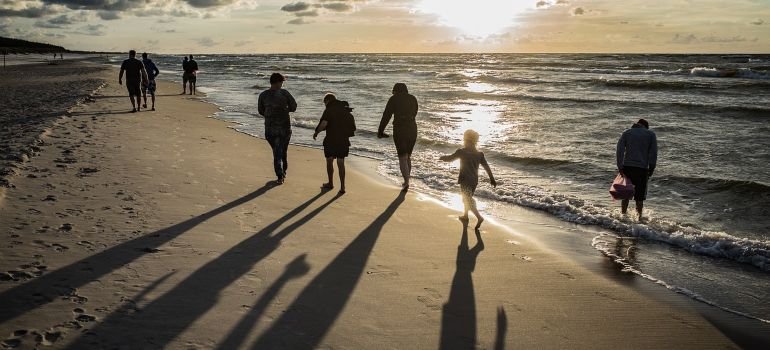 Family on a beach.