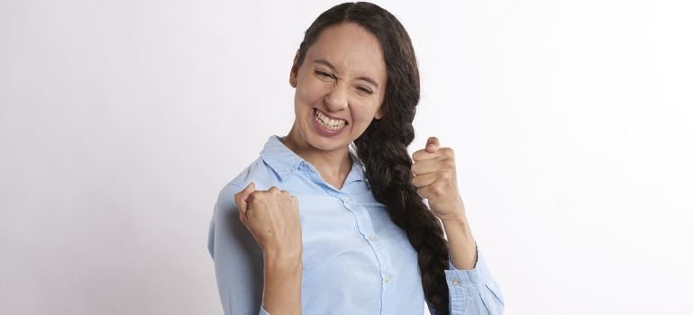 An excited woman.