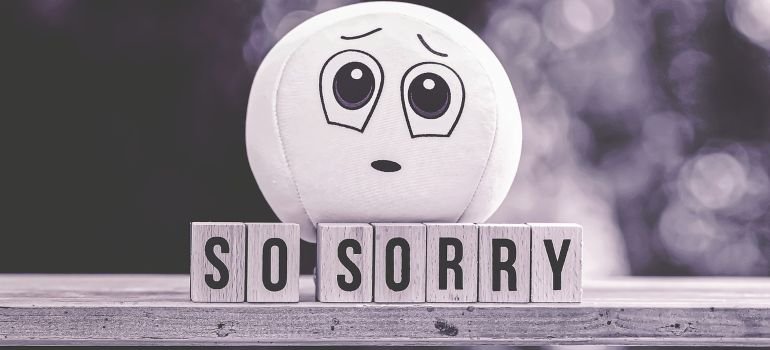 A toy next to a phrase spelling out so sorry.