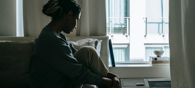 a sad woman on detox , representing long-term side effects of marijuana abuse