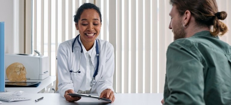 A doctor talking to a patient.